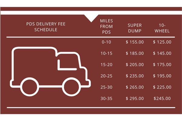 *If delivery is not possible due to unsuitable dumping location, customer is responsible for delivery fee.